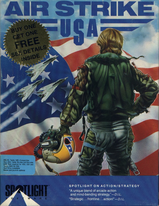 Airstrike USA is an arcade action flight game, where you fly the ATF (Advanced Tactical Fighter) on various missions around the world. Missions include destroying enemy submarines, radars, aircraft, bases etc. In the game you watch your ATF from behind with an very simplified instrument panel at the bottom of the screen.