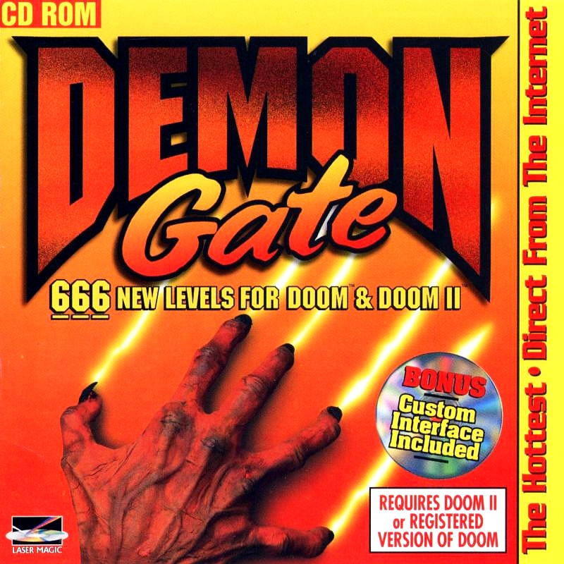 A large collection of DOOM and DOOM II WAD files - Demon Gate was compiled by downloading add-ons off of the internet and then marketed to retail for those who did not have an internet connection. The disc comes with a utilitly called EasyWAD to help sort through all of the files.