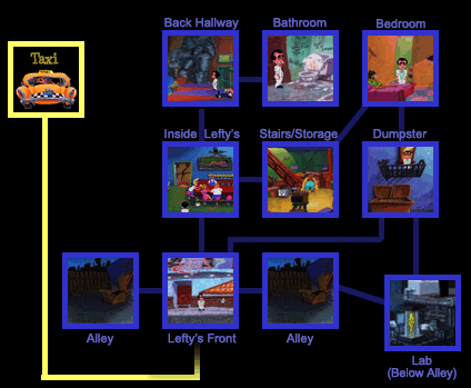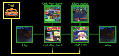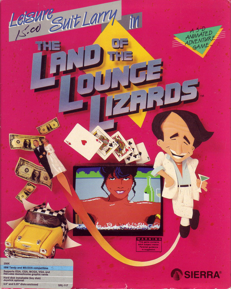 Leisure Suit Larry 1: In the Land of the Lounge Lizards is a remake of the first game in the Leisure Suit Larry series. It introduces a new interface. Instead of typing commands, you perform the desired actions by choosing appropriate icons and then clicking on the objects you want to interact with. The graphics are now 256 color VGA, and there is much more music than in the original.