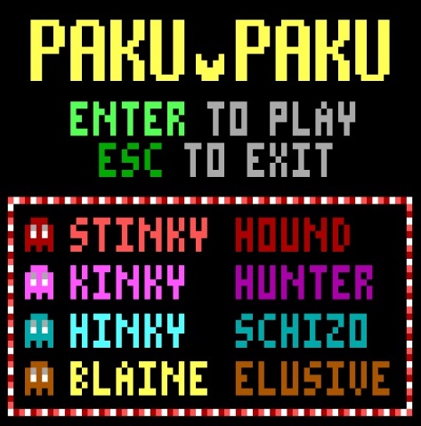 Paku Paku is a Pac-Man conversion written to run on hardware three decades older than itself. Starting out as a Retrochallenge 2011 Winter Warmup entry to demonstrate 16-color graphics programming using the CGA's unofficial low-resolution mode, it grew into a full game with support for all major graphics and sound hardware of the early PC era, fully playable even on the very first IBM PC and compatible machines.The game mechanics, logic, sprites, animations, and the ghosts' behavior and "personalities" are all adapted to work within the confines of the lower resolution game grid, trying to stay as faithful as possible to the original arcade version. The familiar premise is fully intact: clear the maze of dots while avoiding the four ghosts, use the power pills to hunt them down, and grab the fruit bonuses when you can. The game was released for free as "Cardware", and the Turbo Pascal / assembly sources are included and placed in the public domain.