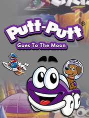 Due to a freak accident at the Fireworks Factory, Putt-Putt is blasted to the moon. There he meets Rover, a lovely little lunar terrain vehicle left behind by the astronauts. Putt-Putt and Rover must work together to rebuild a rocket, and accomplish a few good deeds for the Moon People before they meet the Man in the Moon and are homeward bound. Putt-Putt Goes to the Moon teaches the benefit of cooperation and the lasting value of friendship.