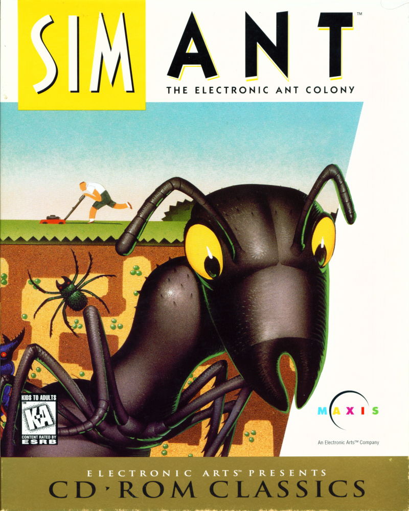 SimAnt explores the detail of the lives of ants, as you take full control of an ant colony. Build up your colony to conquer the other colonies in the yard. Foes include spiders and humans - make their lives a misery by invading their homes. A Quick Game option focuses on battles with other groups of ants, and a full Tutorial mode is provided. Biological detail of real ants is provided, to help make the package more Education.