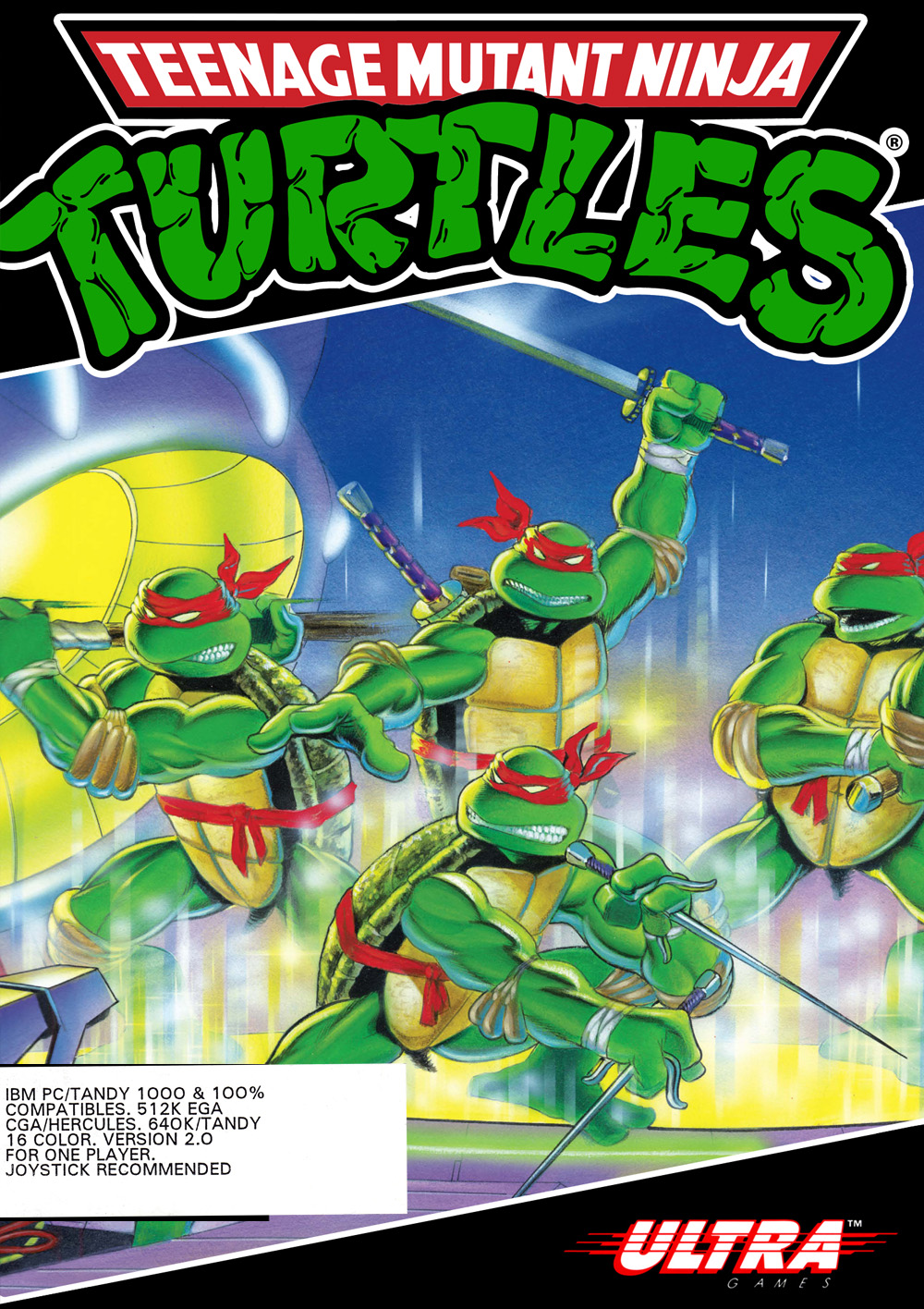 With April O'Neil held hostage by The Shredder's thugs, Bebop and Rocksteady, once again, it's up to the Teenage Mutant Ninja Turtles to come to her rescue! Play as all four of the turtle heroes, rescue April, and then rescue your sensei Splinter from Mecha-Turtles clutches than go after The Shredder deep in the bowels of The Technodrome itself.Teenage Mutant Ninja Turtles is an action game based on the late eighties/early nineties cartoon series of the same name. Play as Leonardo, Michaelangelo, Donatello and Raphael (one turtle only, but the ability to swap between turtles at any time) as you save your friends and battle The Shredder and his cronies. There are no 'lives', as such - when you lose a turtle, he becomes 'captured', and you cannot use him again until you rescue him from a place hidden in the overworld.Gameplay takes place in two perspectives: a top-down view, which lets you run around and explore buildings, sewers and other places. When entering places from the top-down view, the perspective shifts to a side-scrolling view, where most of the battling takes place. In addition to each turtle's main weapon, sub-weapons (such as shuriken) can be acquired, to use at foes - these have a limited use.