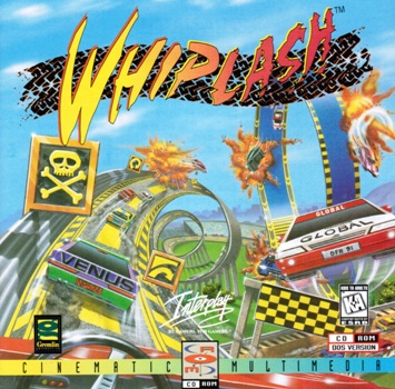 Whiplash is a fast-paced racing game where you choose from eight different cars and race on over sixteen different tracks to brave death-defying loops and corkscrews in stunt racing. The different players are organized in teams of two cars each. The aim is of course to reach the finish line first, but on harder difficulty levels opponents can also be killed by repeatedly bumping into them. The damage is visible, with dents and smoke. Each track has a pit stop where cars stand still to be repaired, but they can be pushed out of the area. When going for kills, team members will not engage each other.