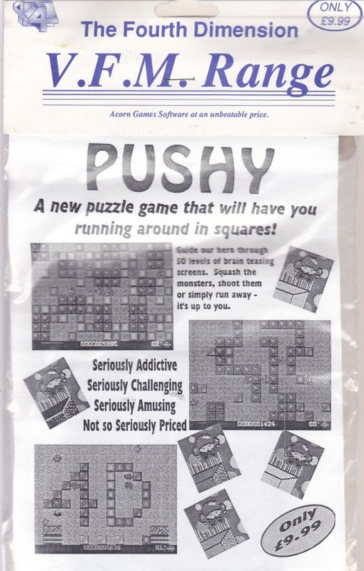 You can push the blocks around the screen, however there are 6 different types of blocks, and when you push them them they will act as follows : the grey ones will only move one space at a time, the purple and red ones will move until they hit a wall or another block and the green, blue and orange ones will bounce off any walls and blocks just once before they stop. If you are in the firing line when they are moving you will get squashed and a life is lost.