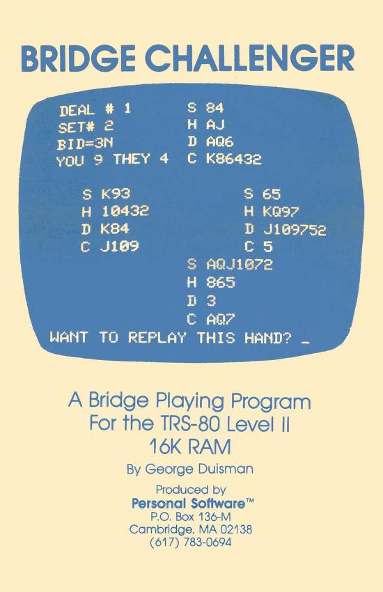 Bridge Challenge is a bridge game for the Apple II. It required 16k of RAM and was released on cassette