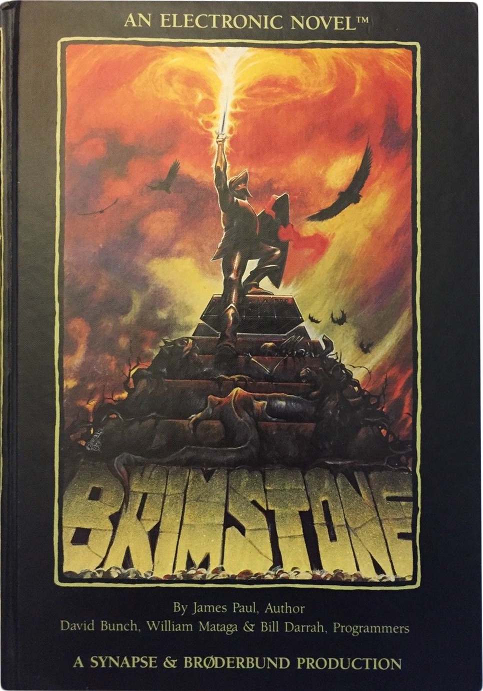 Brimastone is an electronic novel written by James Paul. Brimstone was distributed with a hardcover book. It was released on multiple platforms including the Apple II, Atari 8-bit, Commodore 64, Macintosh, and PC.
