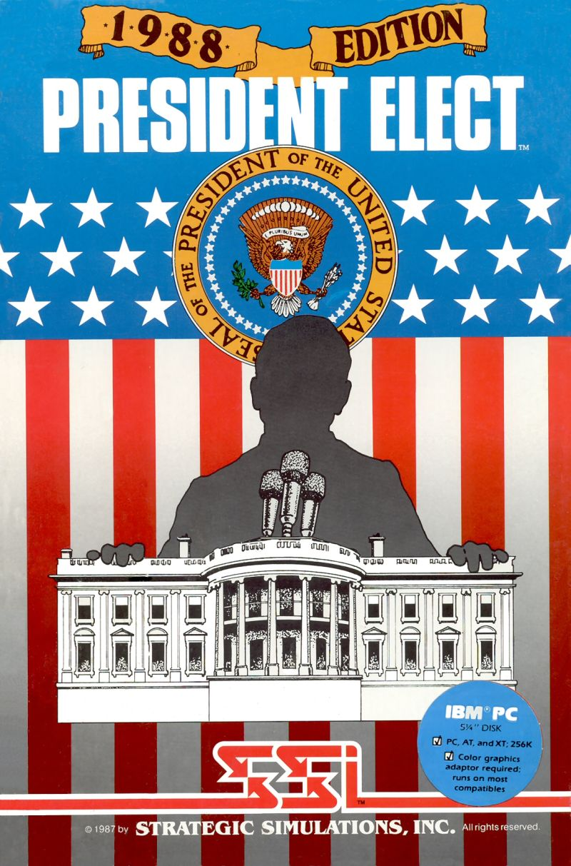 President Elect:1988 Edition is an updated version of the original President Elect adding the campaign data for the upcoming (at the time) 1988 election. The game is a comprehensive computer simulation of a presidential campaign from Labor Day to election night. The game can be played by 3 players each assuming the role of campaign manager/candidate. The game proceeds through 9 weekly turns where the player decides how and where to concentrate their campaign efforts. Weekly polls are provided to give the players an idea on how they are doing. On election night the returns come in on a minute to minute basis until a winner is determined. The election night may be simulated in real time (2-6 hours) or the votes may be counted in 15 seconds. President Elect has seven historical scenarios (from 1960 to 1988) or a virtually unlimited number of hypothetical or ahistorical scenarios.