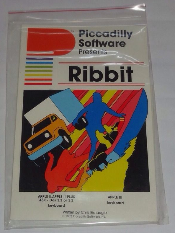 Ribbit is a Frogger variant which in most ways works just the same as the arcade original. The player controls a frog that first has to cross a interstate highway without being hit by a vehicle and then a river without falling into the water. The aim of the game is to reach the holes on the opposite end and get a frog into each hole. When successful the game moves on to the next level where traffic moves faster and the river has less logs and turtles to jump onto. The player starts out with three lives and one is lost every time the frog is hit, falls in the river, moves outside the screen or doesn't move quick enough. Each frog has about 35 seconds to reach a hole. Later levels have some surprises including a stomper trying to get the player.