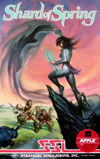 Shard of Spring is a role-playing game, in which the player creates and builds up a party of adventurers composed of the traditional races of humans, elves, dwarves, trolls, and gnomes. The two main classes are warrior and wizard; each class specializes in different skills (such as elemental proficiencies). Towns are represented by simple text menus; most of the action takes place in the dungeons, fighting enemy parties in turn-based combat.