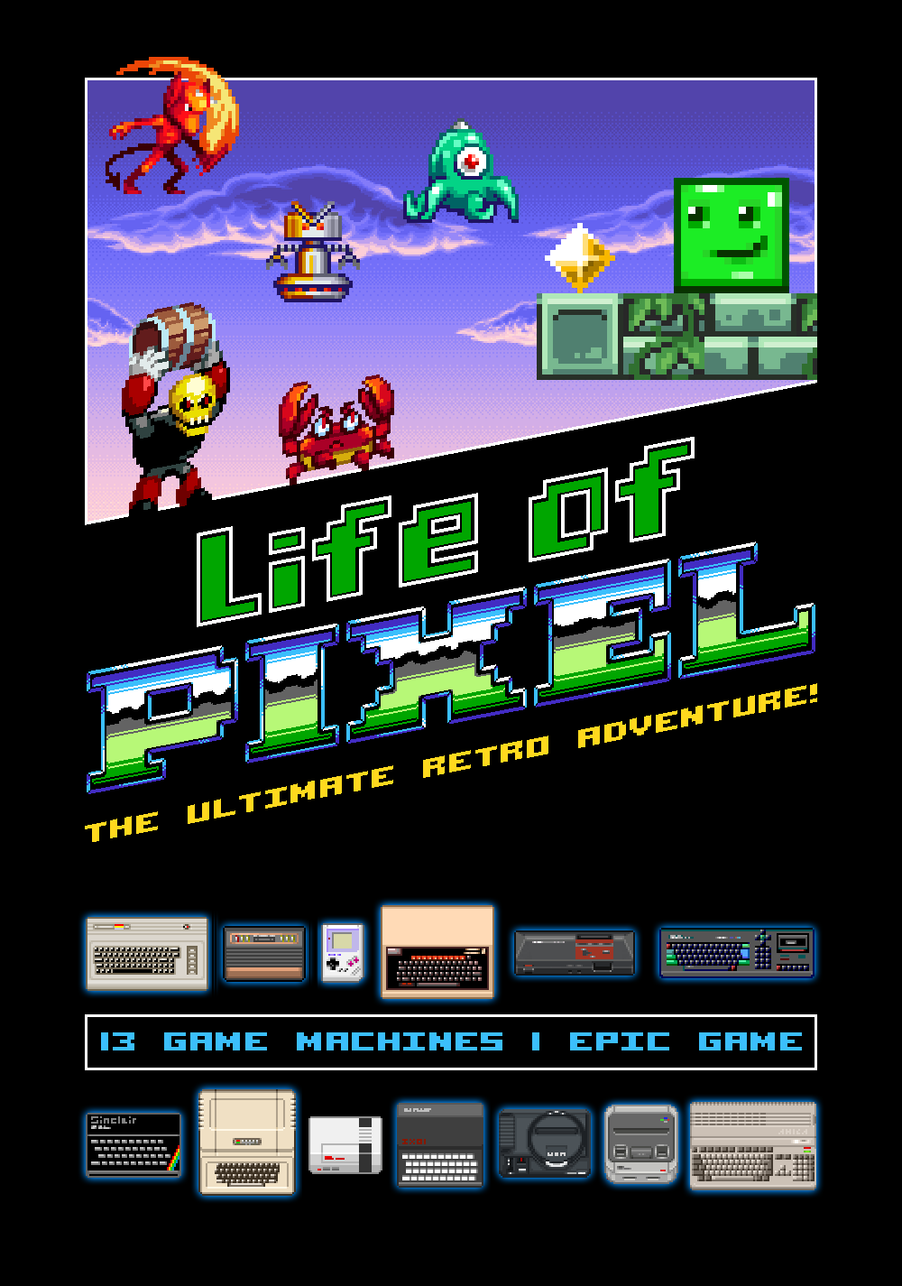 Journey across the expertly-recreated worlds of more than a dozen vintage gaming systems, from Commodore 64 to Gameboy to SNES! Life of Pixel takes you on a historical tour-de-force across the rich landscape of 8-bit and 16-bit gaming.