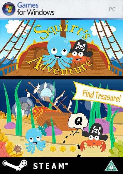 Squirt's Adventure is a word game designed to help children associate new words with letters of the Alphabet. Tag along with the cheerful pirates Squirt and Captain Dungee on their quest for treasure. Use your alphabet and vocabulary skills to help them find the golden loot.