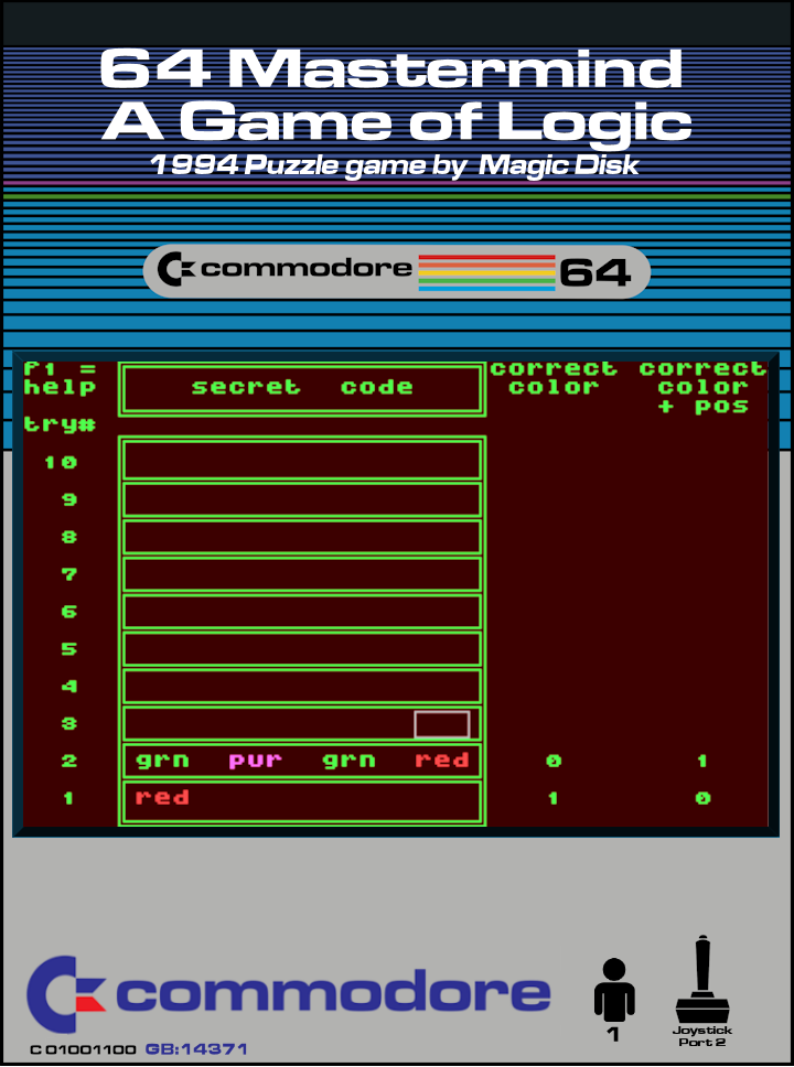 A computerized version of the popular brain puzzle game Mastermind developed by Jorgo van Osch and published by Magic Disk in 1994.