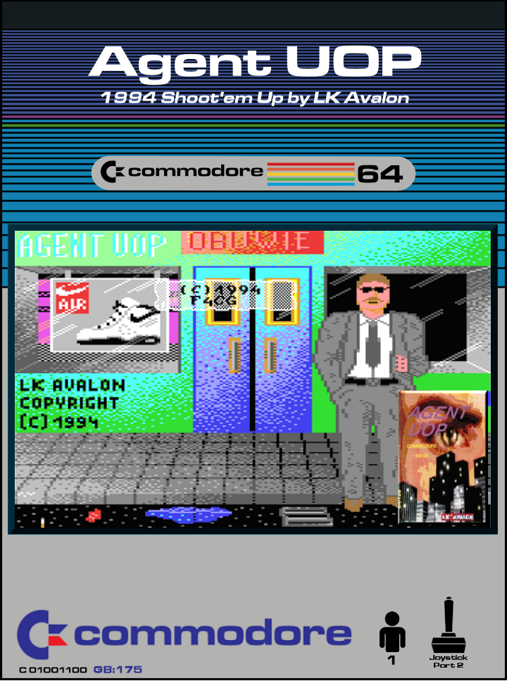 Agent UOP is an arcade platform game. The player assumes the role of a special agent. His task is to infiltrate the headquarters of terrorists to plant explosives and collect evidence of their guilt. The agent can use the elevators, shoot, jump and crouch. The forcefields may be opened by using the appropriate magnetic cards. For the fight against the enemies the player has a pistol, in a building he can also find the ammunition and first aid kits.