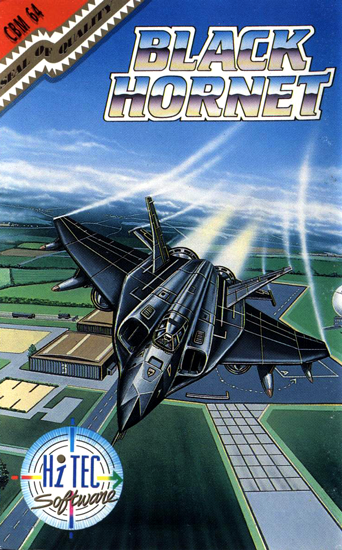 You pilot the Black Hornet, an advanced stealth fighter that can nip in and out without any sound to destroy any enemy. Once again the world is under threat from a madman so it's decided to send in you with the Black Hornet. You will encounter various enemies and ground installations who are hell bent to destroy you. As well as destroying these, buildings and various vehicles can be destroyed as well. Desert, valleys and mountains, sea and space will need to be flown through to complete your mission. Black Hornet is a vertically scrolling shoot-em-up viewed from above. The joystick is used to control your plane while the fire button fires one of various weapons. To select a weapon you press the space bar. You need also to keep an eye on your fuel gauge which slowly empties the further you progress. Along the way you will see an airfield or an aircraft carrier. Pressing forward and fire on the edge of these will allow you to land on them. Be careful though because the enemy can still hurt you. Here you can buy more weapons and even re-fuel. These items cost you points so make sure you blast every thing in sight to boost your score. As well as the main playing area you can also see your lives, score, damage gauge, fuel gauge and weapon selected.