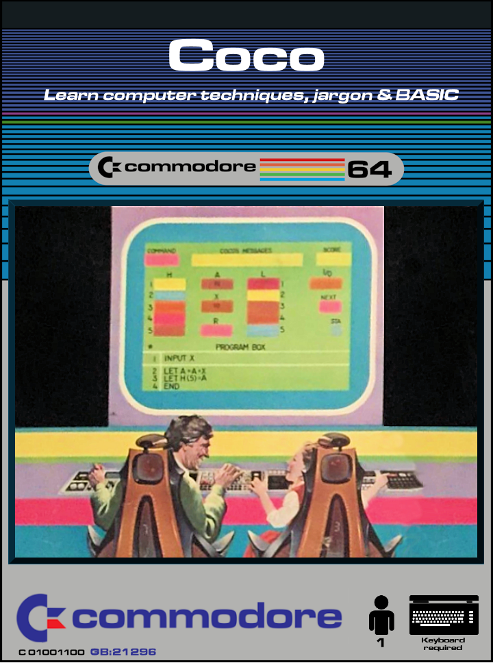 Coco is an educational game for ages 9-90. It allows you to learn computer techniques, computer jargon, and BASIC (and problem solving). It tackles subjects like memory, addressing, registers, loops and so on.