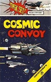 Cosmic Convoy is a side view horizontal scrolling shooter where the screen scrolls left or right when you move your ships. The System Coman is in difficulty, with the various planets within, needing supplies, and so a convoy of relief ships are moving between the planets dropping off the essential supplies. Your mission is to control a squadron of three ships to protect the convoy from alien attackers as they make their way to the next planet. As well as moving up or down, you can move to the right or left of the convoy to intercept any fighters, but not moving left or right, sees the convoy slowly catching up to your ships.