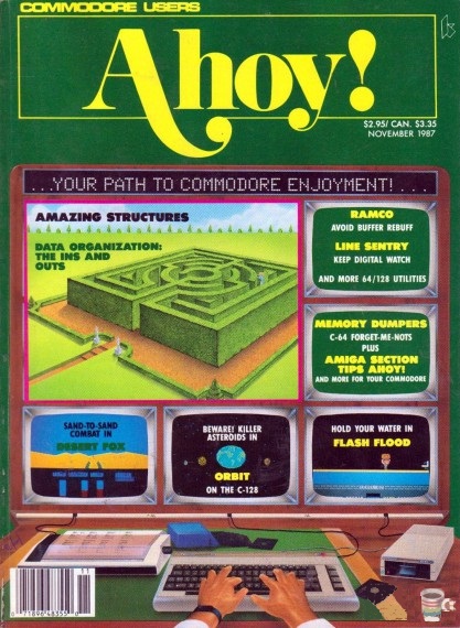 You arc a small outpost armed with a Marksman IV antiaircraft system. You must keep the scout planes from getting past you -the free world depends on it! Published in Ahoy! 1987/11 (Issue #47).