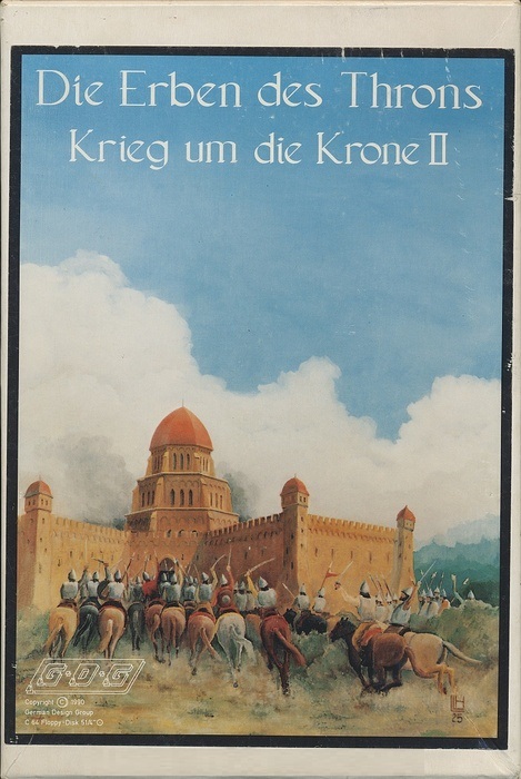War for the Crown is a strategy game by the German Design Group , which appeared in 1989 for the C64 . It's a bit like the board game Risk. The goal is to conquer a fantasy kingdom or ascend to the king. To do this you must conquer lands in which there are chests. In the chests sovereign insignia (crown, scepter, imperial apples) are included. Each baron has its own insignia. Whoever has all three first is crowned king. In addition to competing barons, there is also a threat of trolls and dragons.
