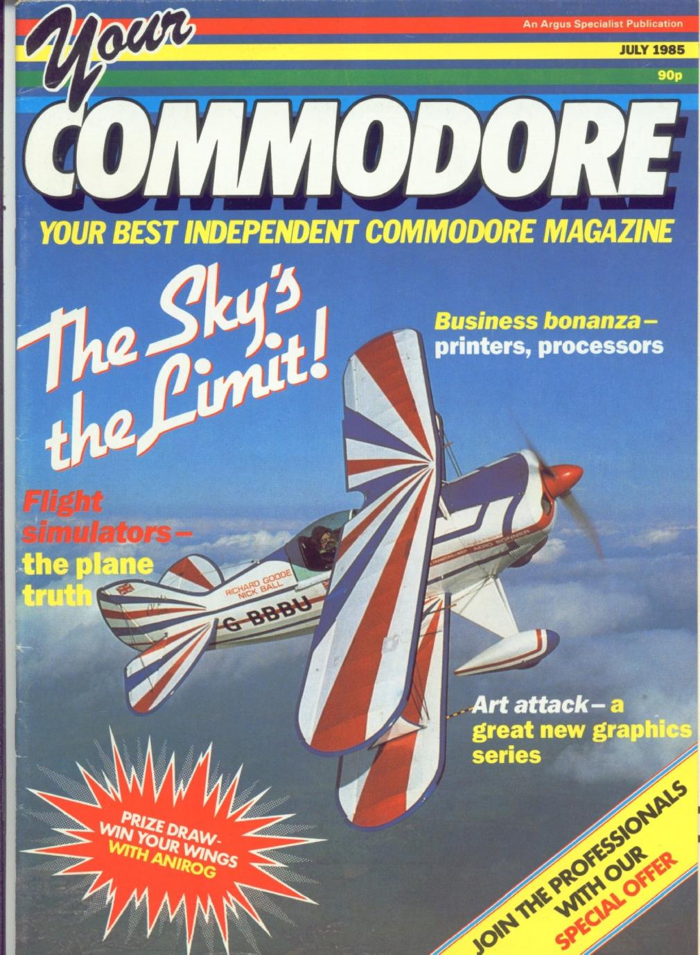 Published in the book "Winning Games on the Commodore 64", in the German version "Das große Commodore-64-Spiele-Buch" and also in 75 Spill Datatronic. the dog fight takes you back to World War I and puts you in the cockpit of a biplane over the English Channel. Your job is to shoot down as many enemy aircraft as you can. Because ofhe prevailing wind, you have to be very accurate when targeting the enemy, and you may find you use as many as 30 bullets on one plane. Guide your sight over the plane and shoot like mad!!!