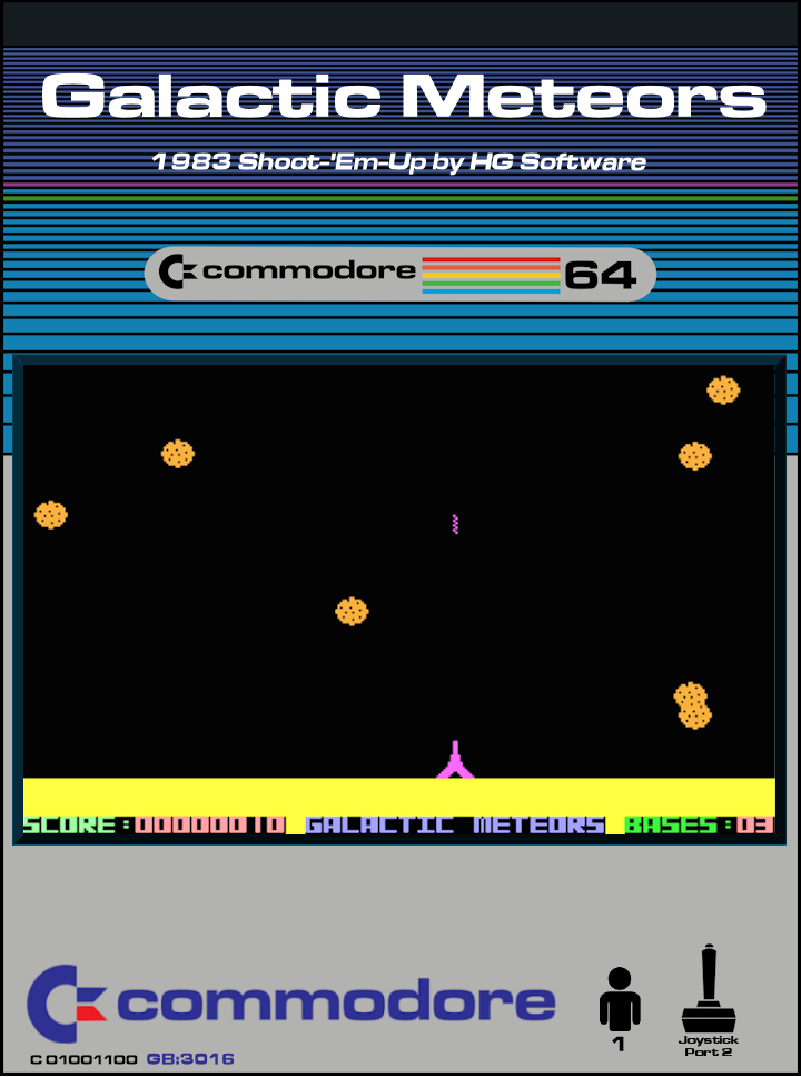 A game that kind of mixes Asteroids with games like Space Invaders or Galaxian. It's a stationary shooter where you have to destroy meteors/asteroids falling to the ground. Somewhat similar to Astrosmash: Meteor on the Mattel Intellivision.