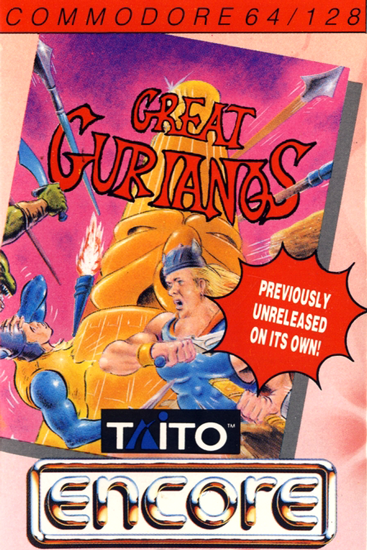 In Great Gurianos, the player controls a gladiator who must battle through a castle. The game is viewed from the side while the screen scrolls. The player controls the gladiator's shield as objects fly towards him. The gladiator is also able to strike opponents with his sword. There are also icons to collect to boost your armor or give bonus points. The gladiator also has the ability of temporary invulnerability.