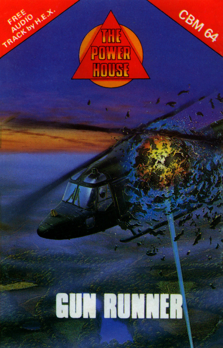 Gun Runner is based on the classic game Choplifter where you must fly your helicopter over eight side-view, horizontal scrolling levels where the screen scrolls when you move to the left or the right. You must search each level for a certain amount of men within a time limit and when one is seen you must fly as low as you can and lower a winch to pick him up. Trying to stop you are various baddies that fly around each level and must be shot or avoided and if touched or you get shot then you lose one of three lives. You are equipped with three smart-bombs which destroy anything on the screen and you receive one more for every level completed. Also released in Magic Disk 64 1992/12.