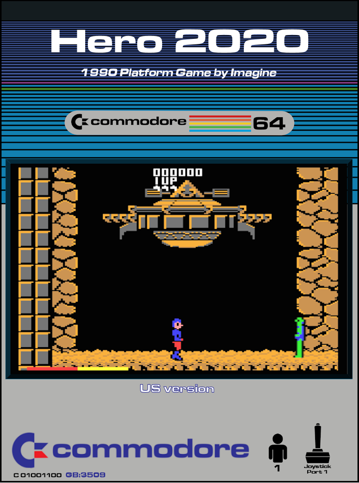 In Hero 2020 the player takes the role of the last remaining member of the Cosmo Police. His comrades died while trying to free the planet Cynep from the evil roaming on it. Now the player is the last hope. This game is a mix between a shooter and a platformer: the player walks through the caves, jumps over obstacles and shoots everything in sight. Well, at least if he has a weapon: at the beginning he is unarmed and can only kick or punch. He has to find pyramids which were dropped by his dead colleagues (also sometimes from killed aliens): those grant an armor, more life energy and a weapon. When the player find even another pyramid, the weapon gets upgraded for a limited amount of time. However, every hit decreases the life energy and if it goes down too far, the armor and weapon are lost. Reaching zero results in death. At the end of every level, the player has to defeat a big boss alien.