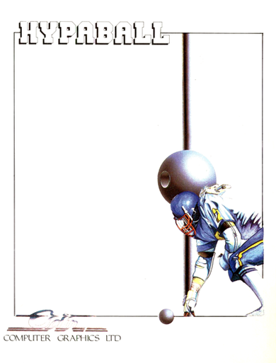 Hypaball is a two player futuristic sports game, played between the Hawks (human) and the Vipers (human or CPU). Choose your three-man team from a pool of 10 players, each with slightly different stats for strength, agility and speed. The teams have to pass and catch a ball and shoot it to a moving basket in the middle of the screen. Two players are in the air (one in each half of the arena), while the third remains on the ground to collect an otherwise-dead ball. You simultaneously control the grounder and the air player nearer the ball - they move left and right in unison, but only the air player responds to up-down movements. Players can only hold possession for 2.5 seconds, in order to keep the games fast and frantic.