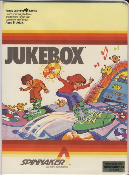Jukebox is a musical strategy game that's kind of a cross between a chess match and a dance contest. During the game the Jukebox is jumpin' with lots of terrific songs. Songs so good you never want them to stop. But to keep the music playing you've got to create gold records. Using your dancing feet and your natural sense of rhythm you jump from square to square creating hit records as you go. Aim for the pulsating gold tiles, because you can build them into records. And the more gold records you get the more coins you earn. Use the coins to keep the music bopping and the game from stopping. Play against the computer or another player.