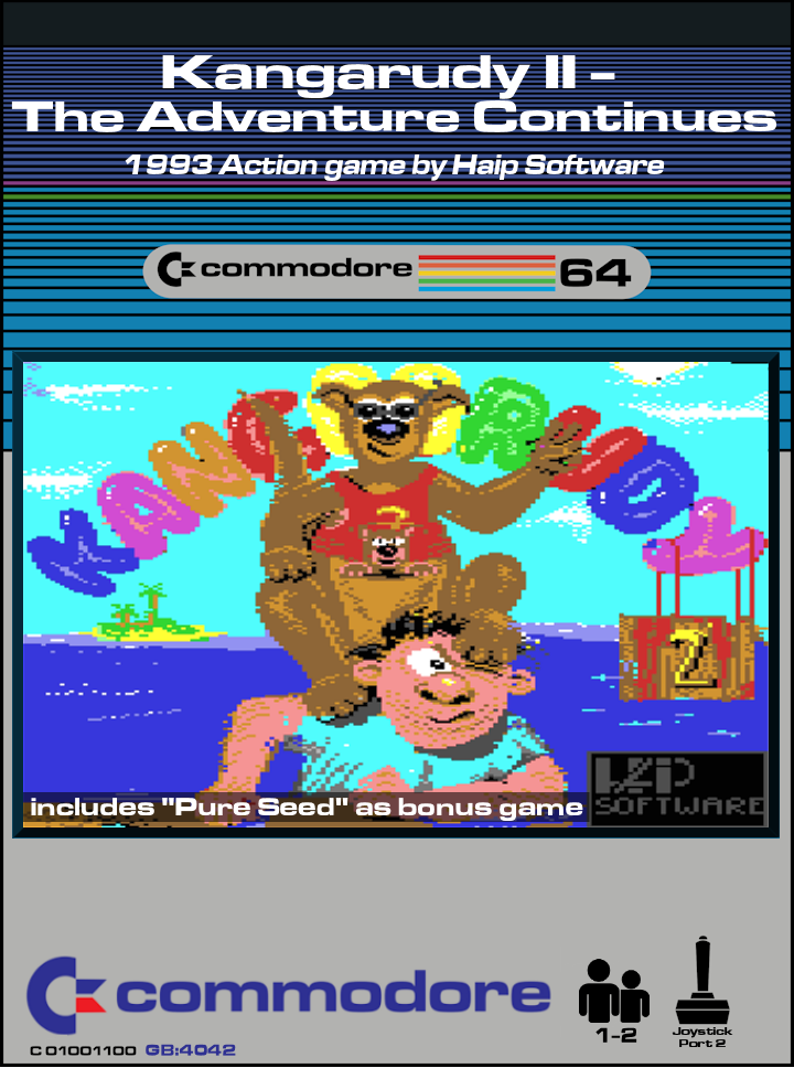 Kangarudy II: The Adventure Continues... is very similar to its predecessor. The player has freed some kangaroos from being slain and now has to bring them back to their home. From a world map, the route to Australia is chosen. Then the game switches to a side-scrolling level, where majority of the playing time takes place. Here the player drives from left to right (either by boat or truck), avoids obstacles and collects power-ups like extra lives or parachutes. However, the main problem are the kangaroos which can't stand still. So they regularly jump out of the vehicle and the player has drive it to the correct place of the screen so the kangaroos land back safely - otherwise a life is lost. Some levels also have some gimmicks, e.g. fog or darkness, depending on the chosen route.