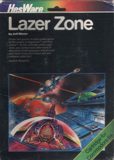 One of Jeff Minter's early eighties shoot'em'ups in his typical frantical style, Laser Zone has you controlling not one, but two "zone gunners" in a constrained playfield. Controlled with only one joystick, you move one zone gunner on a vertical wall and one at the bottom. Wave upon wave of nasties come into the zone, and must be shot down before they reach either wall, where neither gun can reach them and they advance toward you. You can try to escape perpetually, since your movements wrap around the screen borders, at least until another enemy has reached your wall, but it is better to use up one of your electro bolts that will erase everything on the screen.