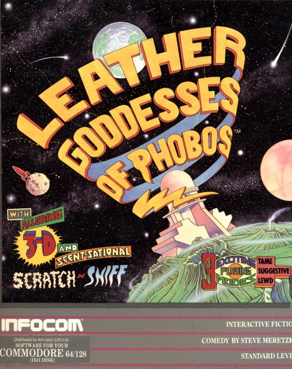 The year is 1936, and suddenly the protagonist is abducted by the Leather Goddesses for the final testing in the plan which will enslave every man and woman on earth. These Leather Goddesses of Phobos are just finishing up their plans for the invasion of Earth. If the hero fails to escape and save humanity, the Leather Goddesses will turn the Earth into their pleasure dome. Leather Goddesses of Phobos is a text adventure with humorous overtones. The player uses standard commands in the text parser to observe his environment and pick up items. The game's 'naughtiness' level can be adjusted between Tame (G), Suggestive (PG), and Lewd (R).
