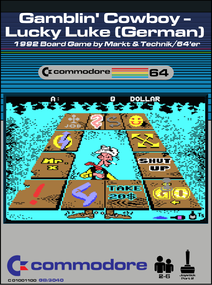 Another game based on the comics good cowboy Lucky Luke, who draws his gun faster than his shadow. This time he must be lucky and quick enough to answer the questions and win the money. The game represents the board game for 2-6 players to acquire wealth through different activities specific for the Western movies. Such activities involve the taking or giving the play money based on the luck or correct answers, as players take turns moving around the board according to the roll of the dice. A typical turn begins with the rolling of the dice and advancing clockwise around the board the corresponding number of squares. When player lands on certain square, he may be teleported to another square, or win/lose the money, or be proposed to answer a question for a defined period of time. The winner is the first player who collects the sum of money defined before the start of the game.