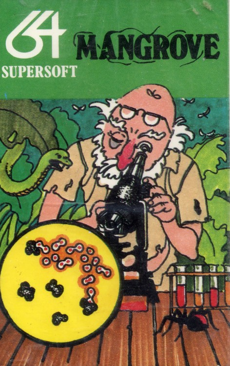 Mangrove is a single screen game where you have to protect healthy cells from cancer cells in the Mangrove Swamps while trying to create more. You start with 30 cells in the middle of the screen and from the edges appear the cancer cells, and with a sight you move it around the scren hitting the cancer cells to remove them. If a healthy cell is touched from a cancer cell then it disappears and because healthy cells have to be touching four others then any cells touching less than four disappear also. As you move the sight around the screen you create healthy cells but you only have a short time to get them to touch four cells or they disappear. You are armed with gamma radiation and when used destroys any cancer cells on the screen but you only have four but you do receive more after a certain score. If there are less than twelve healthy cells on the screen then it is game over.