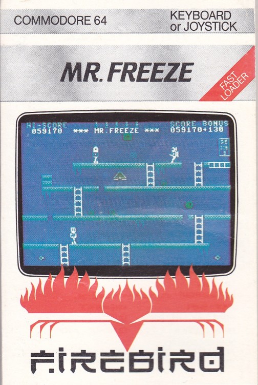 Mr. Freeze is a flick-screen platformer where your task is to de-ice six compartments of a giant fridge by moving from the bottom-left of each compartment to the top-right to touch the de-icer. In each compartment are various platforms and you climb ladders or drop down through gaps but you can only fall a certain height. A compartment doesn't have to be de-iced to move to the next one but you can only move between them where an arrow points. There are various deadly obstacles that need avoiding and they are ice cubes, robots, other creatures and a laser at the top of the screen. When you climb a ladder, the laser moves across and fires at you and if you are hit by any obstacle or fall too far then you lose one of six lives. You are armed with a gun and although it can't destroy anything it can push items back.