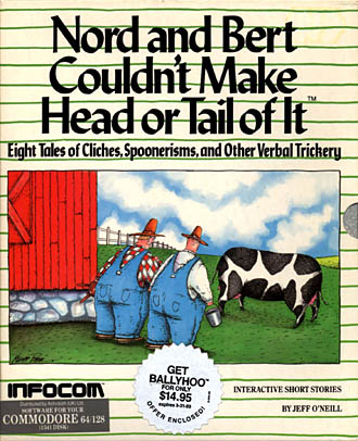 Nord and Bert Couldn't Make Head or Tail of It is a text adventure game revolving around puns and wordplays. Idioms and clichés have become real-world objects in the town of Punster, and the player has to sort them out in order to win. There are seven separate scenarios that can be played in any order, as well as the final one that can be accessed only after having completed all seven. These scenarios are: