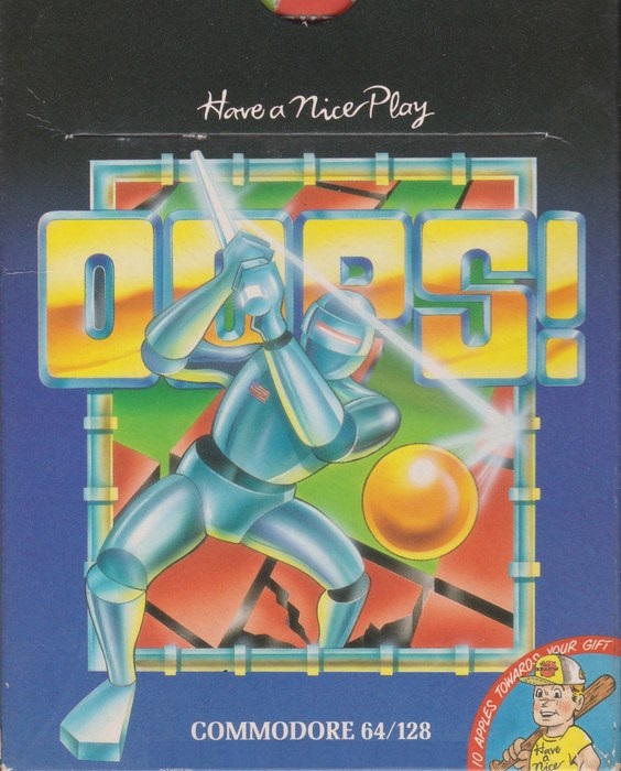 Oops! is an arcade puzzle game where the aim is to move a Quadroid over 32 levels, collecting eight gravity pods on each top view single screen. You have to move your Quadroid over a maze of platforms while avoiding nasties that move about each screen and if you touch one then you lose one of three lives. As you move about the screen there are also various platforms to be wary of like platforms that disappear when moved across, platforms that turn on and off, and platforms that send you in a certain direction. If you fall of a platform you also lose a live and when all lives are lost then it is game over.