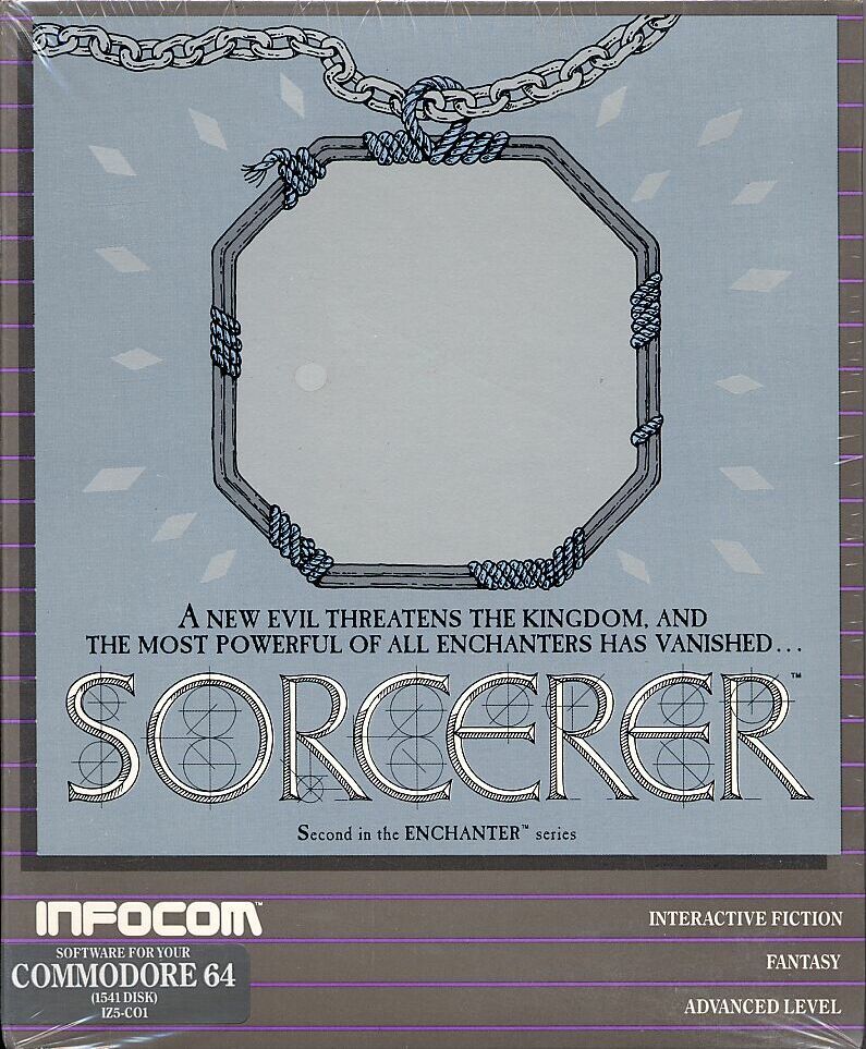Following the defeat of the evil krill in Enchanter, the intrepid apprentice have become a full member of the Circle, under the command of the famed Necromancer Belboz. Very soon, however, the hero notices that something strange has been happening to the master. He frequently talks to himself and seems to be under some sort of a malevolent influence - until one day, he is mysteriously kidnapped. Looks like the brave Enchanter must venture on a perilous journey once again, and bring back the leader of the Circle. Sorcerer is a sequel to Enchanter, and is part of the Zork universe. Like its predecessors, it is a text adventure, in which the player interacts with the game world by typing combinations of verbs and objects. The spell system from the previous game is back, a new feature is the protagonist's ability to drink magical potions, which must be done sometimes in order to solve the game's puzzles.