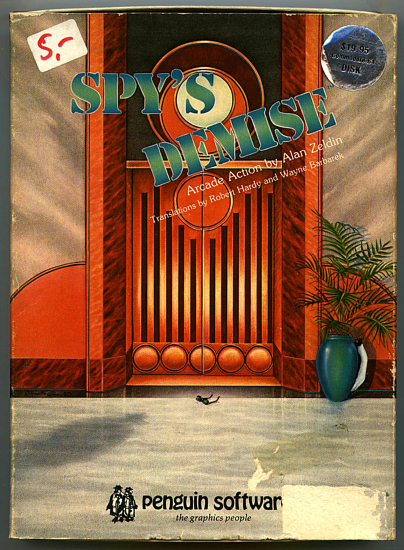 Spy's Demise is an action game written by Alan Zeldin for the Apple II, published by Penguin Software in 1982 . It was ported to the Atari, Commodore 64, Texas Instruments TI-99/4A, and Vector-06c. The game contained a puzzle which could be solved for a Spy's Demise T-Shirt. According to Antic magazine in June 1984, only four people had solved it.