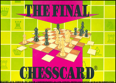 The Final Chesscard from TASC B.V. is a chess computer expansion-cartridge for the Commodore 64. It uses its own 6502 5MHz CPU (and also has its own battery for saving games) that was also used in chess computers from the companies Hegener & Glaser and Fidelity. With a playing ability of about ELO 1600, it is a perfect partner for beginners and advanced club players. Functions for analyzing your own matches are included. Several gameplay modes are available including: Tournament, 5 or 10 min. game, 30 or 60 sec. time for each move, and others (8 modes overall). The game utilizes pull-down menus and window dialogues.