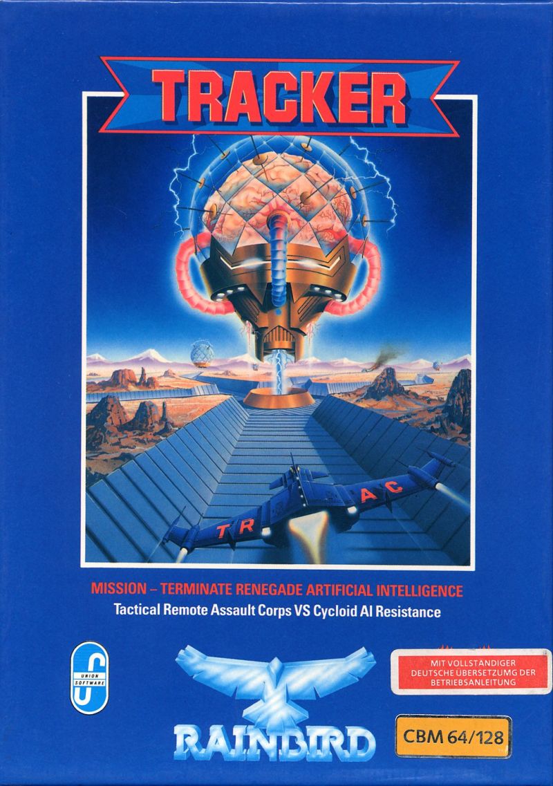 Tracker is a mouse-controlled vector-graphics 3D strategy game depicting an ultra-violent TV show of the future. As a contestant, the player's mission is to be the first to ever complete it successfully. The task involves commanding a fleet of Skimmers charged with destroying various groups of combat vehicles, including Cycloids, Scouts and Defenders. Short and long-range scanners are available to aid in this.