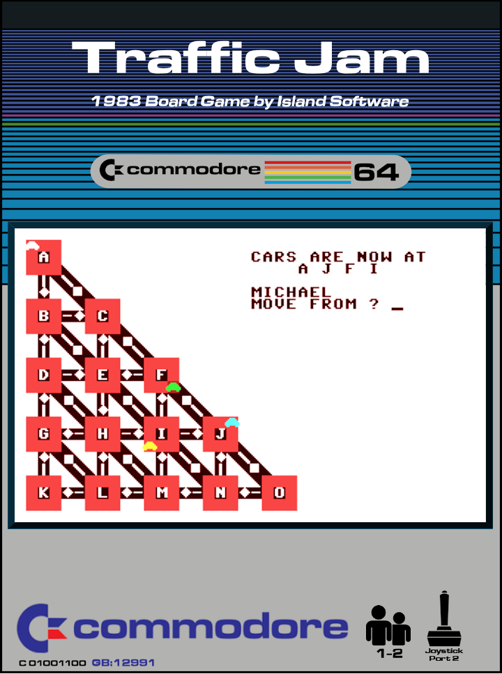 Traffic Jam is a 1983 Board Game for commodore 64, developed and published by Island Software.