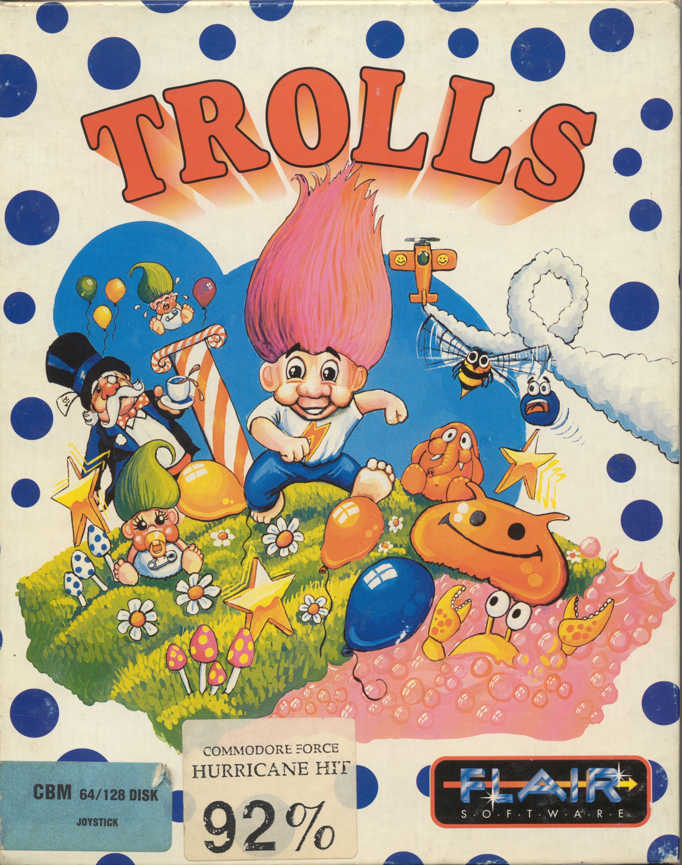 This platform game features the small blue-haired cutesy creatures that were popular around the time (although surely not with most computer game buyers?). You play a Troll roaming the levels in the hope of rescuing as many baby trolls as possible - each level gives you a set minimum to retrieve before you can leave via the Pigstop.