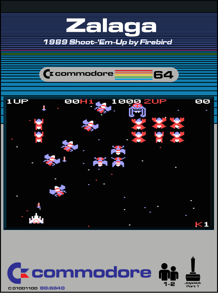 Zalaga is a 1983 computer game by Nick Pelling. It was developed and published by Aardvark Software and re-released by Alternative Software for the BBC Microcomputer and Electron. Zalaga is a fixed screen shoot 'em up that is almost identical to Galaga. It can be played by one or two players with either keyboard or joystick. An operator mode allows the player to customize some of the settings, such as start screen, automatic fire and reload speed. Pelling ported his game over to the C64 in 1989 for Firebird Software.