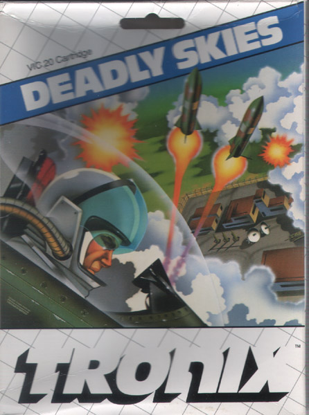 In Deadly Skies you fly an attack helicopter against an array of military installations and anti-aircraft missile sites. Joystick controls allow you to move your chopper to track the targets below or to avoid the rapidly increasing volleys of fire from all around you.