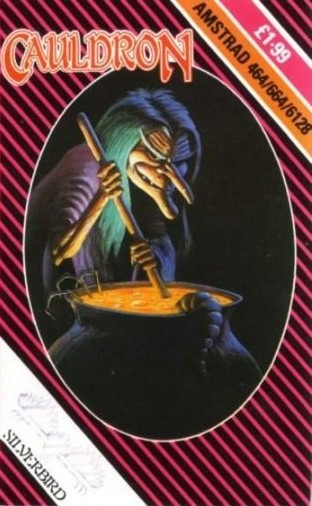 Cauldron is a two-dimensional (2D) shoot 'em up / platformer computer game developed and published by British developer Palace Software (Palace). Players navigate the witch protagonist through the 2D game world from a side-view perspective. Cauldron is divided into two modes of play: shooting while flying and jumping along platforms. Areas of the game world set on the surface feature the witch flying on a broom stick, while underground segments require the witch to run and jump in caverns. In the flying segments, players must search for four randomly scattered coloured keys to access underground areas that contain six ingredients. The objective is to collect the ingredients and return them to the witch's cottage to complete a spell that can defeat the Pumpking. While traversing the game world, the witch encounters Halloween-themed enemies such as pumpkins, ghosts, skulls, and bats, as well as other creatures like sharks and seagulls. A collision with an enemy causes the witch's magic meter (which is also used to fire offensive projectiles at enemies) to decrease. The character dies once the meter is depleted. After dying, the character reappears on the screen and the meter is refilled. Players are given limited opportunities for this to occur, and the game ends once the number of lives reaches zero