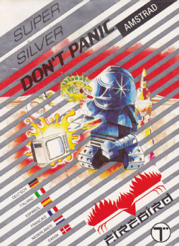 Don't Panic takes place on a succession of multi-level side-view looping levels, each with elevator squares which your droid can use to move up or down a level. Your droid can only cross past the ship at the bottom of the screen. There are indestructible enemies to deal with, mutant toads can be shot but the alien defenses can't, so be prepared to go up and down to dodge these.