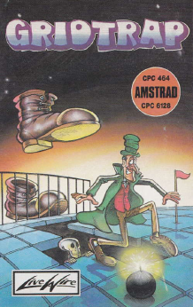 Gridtrap is a single screen game where you have to move around a grid of squares to get to bombs to defuse them before a timer reaches zero for each bomb. As you move, any square you move from disappears so careful planning of a route to a bomb needs to be taken into consideration. A boot will also move around the screen that needs avoiding and skulls cannot be landed on but flags can be collected for bonus points.