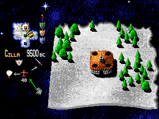First you choose one out of four different characters to represent you, Scarlet (red army), Oberon (yellow army), Caesar (green army), or Madcap (blue army). The game is split into 10 levels - the first 9 are groups of 3 territories which can be completed in any other, while the final 'Mother of All Battles' has its own surprises. Land is mostly of sand, grass or ice. You start with 100 men and you can use whatever quantity you find necessary on each island. The rest men left will go to another level with another new 100. In the second half of the game you can freeze men to save them for the Mother of All Battles. Once you select your island and place for your HQ, you must do some research for better weapons and defences. On the roof of your buildings you can put protectors like archers, gunmen, boiling oil men, and later on even laser turrets. If you send a team of unarmed men into an unoccupied square, they will build an additional base there, with larger armies completing this more quickly.